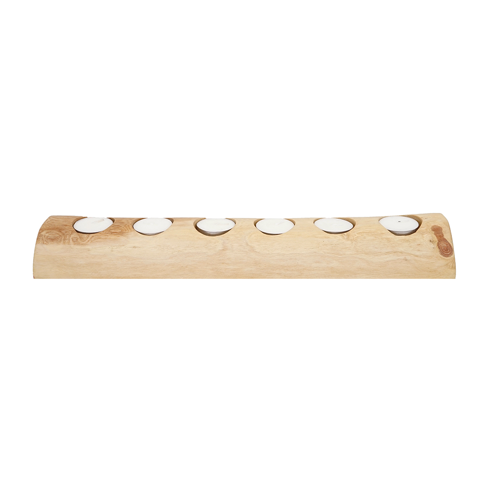 Nicole's Natural candle holder - candle holder 6 is a candle holder made of teak or suar wood in 1 piece of wood and without any finishing (varnish/coating). This candle holder is environmentally friendly, durable, and easy to maintain. Candle Holder can be a great addition to any dining table with a beautiful arrangement of succulents or tea lights!